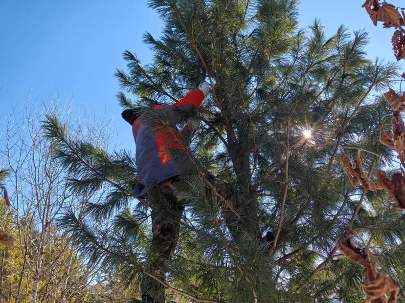 新林林業(yè)局技術(shù)人員在采摘西伯利亞紅松穗條(徐麗華 攝 )