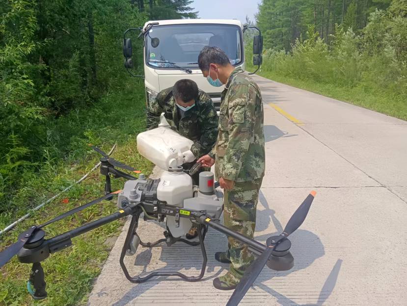 新林林業(yè)局病防站技術(shù)人員在進(jìn)行蟲害防治配藥(任德新 攝)
