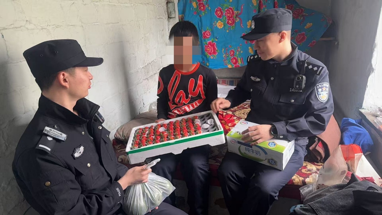 民警來到困境少年家中,詳細(xì)了解其生活狀況和實(shí)際困難,為其送上大米、豆油等生活用品, 并承諾將提供必要的幫助和支持,鼓勵(lì)其堅(jiān)定信心、樂觀向上,努力克服困難。
