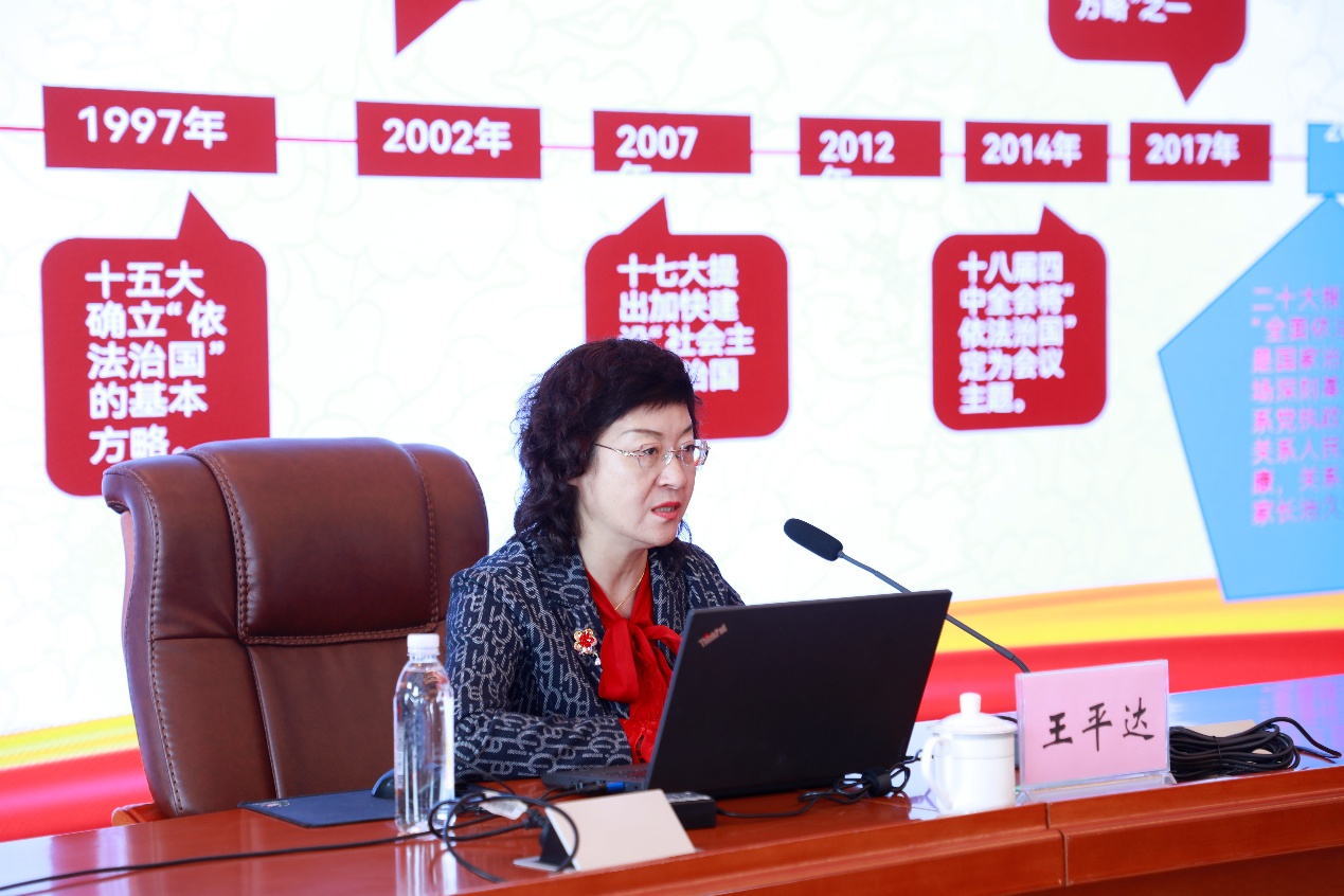 王平達說:“這是一張我自己記錄的我國改革開放以來‘依法治國’路線圖”,講座從全面依法治國的時代命題切入,以立法進程的時光軸為經、以法律體系的四梁八柱為緯,將聚光燈對準《中華人民共和國家庭教育促進法》(以下簡稱《家庭教育促進法》),其中規(guī)定的‘十項必修課’和‘十一項禁止令’為家庭教育劃出清晰坐標,最后以分享起草《黑龍江省家庭教育促進條例》地方實踐畫出圓滿句號。”