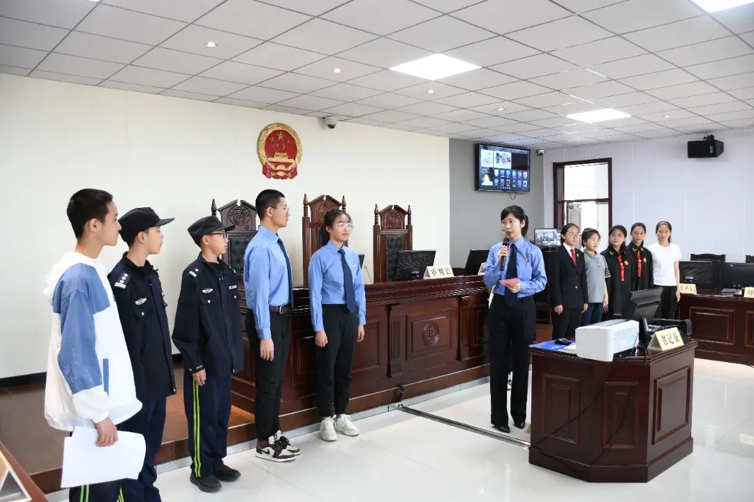 模擬法庭,角色扮演感受司法莊嚴(yán)?!艾F(xiàn)在開庭,請法警帶被告人王小強(qiáng)(化名)到庭?!?
