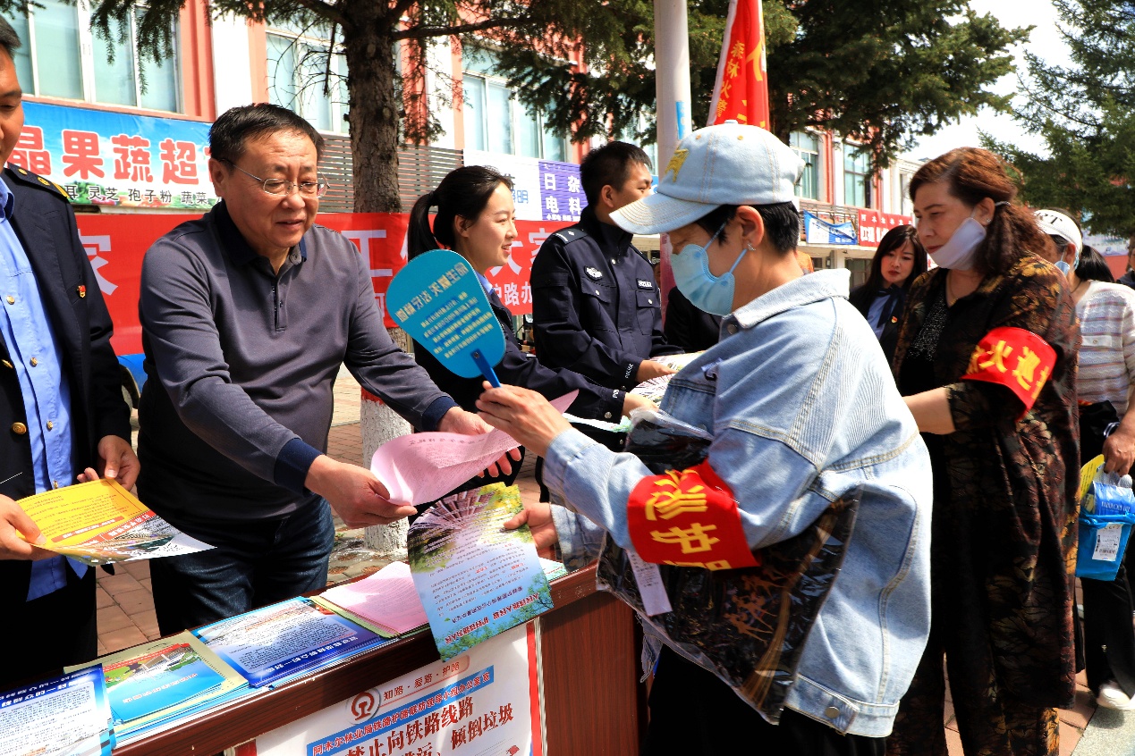 主題宣傳,營(yíng)造氛圍。林業(yè)局以“愛(ài)路在心,護(hù)路在行”為主題,在中華路繁華路段設(shè)立宣傳站,采取懸掛宣傳條幅、張貼宣傳海報(bào)、散發(fā)宣傳單等方式,向居民講解愛(ài)路護(hù)路是每個(gè)公民的基本義務(wù),闡明鐵路是國(guó)民經(jīng)濟(jì)的大動(dòng)脈的重要意義,現(xiàn)場(chǎng)解答居民問(wèn)題200多人次,發(fā)放宣傳單200余份,營(yíng)造“鐵路安全連萬(wàn)家,護(hù)路工作靠大家”的濃厚氛圍。