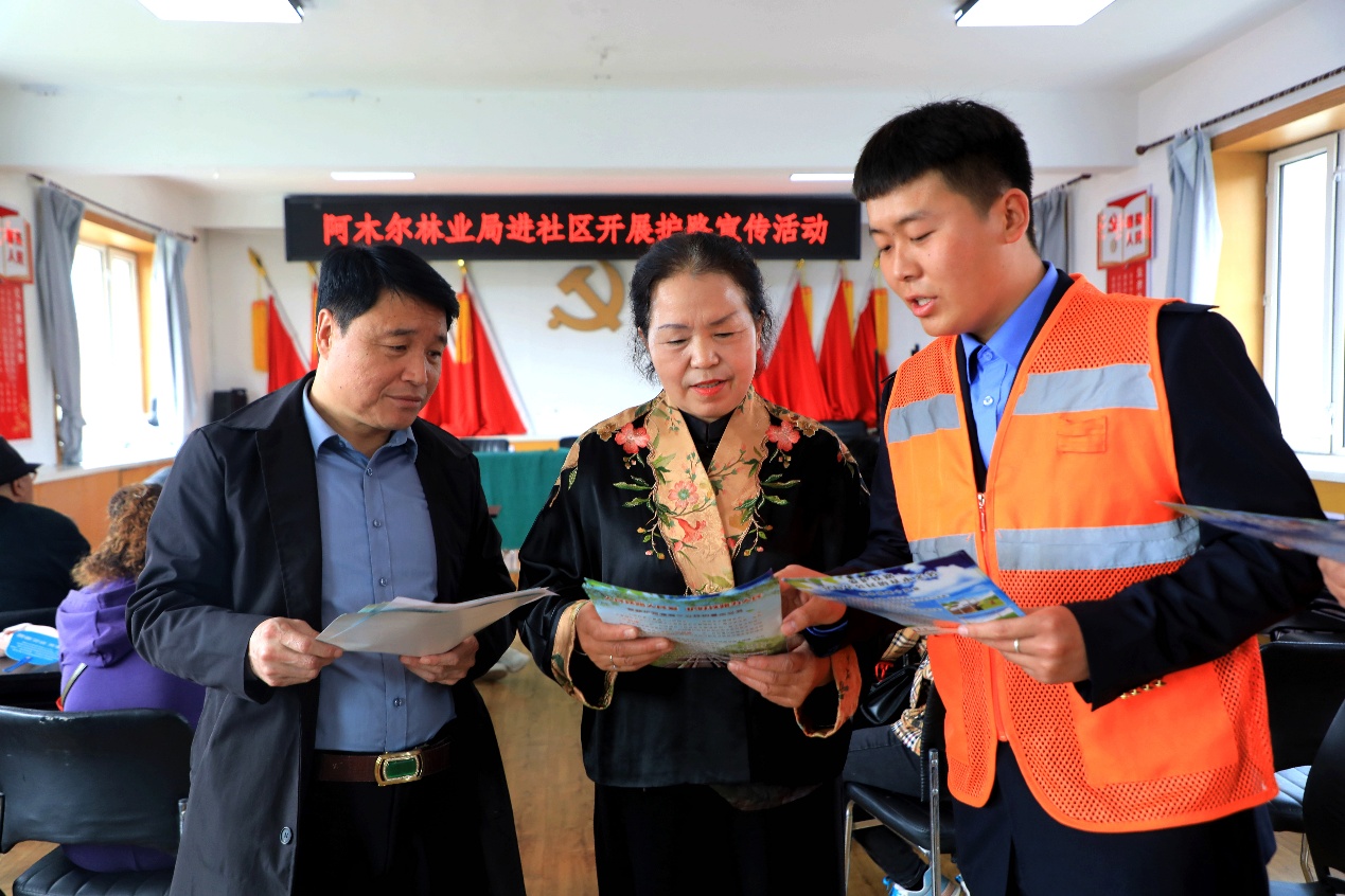 阿木爾林業(yè)局聯(lián)合宣傳小組成員走進(jìn)阿木爾社區(qū),向居民普及愛(ài)路護(hù)路常識(shí)(王力 攝)