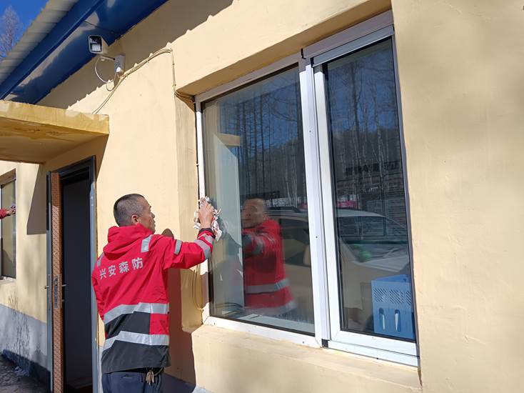 管護(hù)站職工在進(jìn)行衛(wèi)生清潔(趙可心 攝)