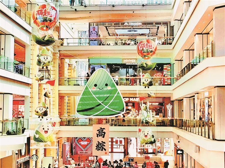 為迎接端午節(jié)的到來,各商場在引進(jìn)充足貨源的同時,也都裝飾一新,節(jié)日氣氛濃厚。