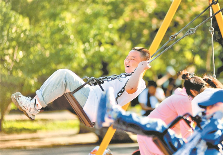 1日,哈爾濱市兒童公園內(nèi),孩子們坐小火車、滑滑梯、騎自行車、放小飛機、蕩秋千、玩蹺蹺板,快樂地度過自己的節(jié)日。