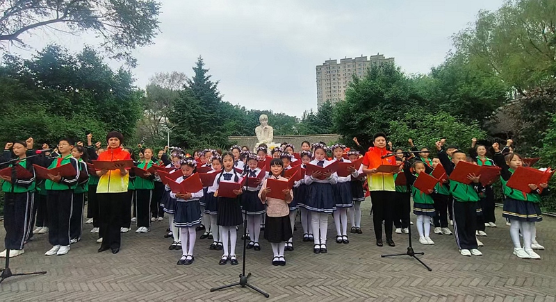 活動現(xiàn)場,愛樂男聲合唱團與哈爾濱市少兒藝術(shù)團聯(lián)袂演繹《呼蘭河的小姑娘》《夢中的呼蘭河》等改編自蕭紅作品的曲目,童聲清澈與男聲渾厚交織,勾勒出文學(xué)與音樂的百年共鳴。原黑龍江廣播電視臺播音指導(dǎo)肖霞朗誦《呼蘭河傳》經(jīng)典片段,令現(xiàn)場觀眾仿佛置身于“祖父的后花園”。