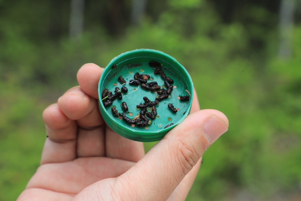 阿木爾林業(yè)局通過廣譜調(diào)查誘捕到小蠹的鉆蛀類害蟲(王力 攝)