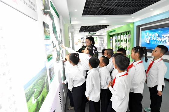 同日,來自勵志學校的師生們走進雙河源國家濕地公園宣教館,參加濕地科普活動。館內(nèi),講解員用通俗易懂的語言,為師生們介紹了濕地的種類、特征,以及濕地在維護生態(tài)平衡、提供水源涵養(yǎng)、保護生物多樣性等方面不可或缺的作用。學生們認真聽講,不時提出問題,互動積極。在隨后的環(huán)節(jié)中,學生們還參與了濕地保護主題的小游戲,在輕松的氛圍中加深了對保護濕地的理解。