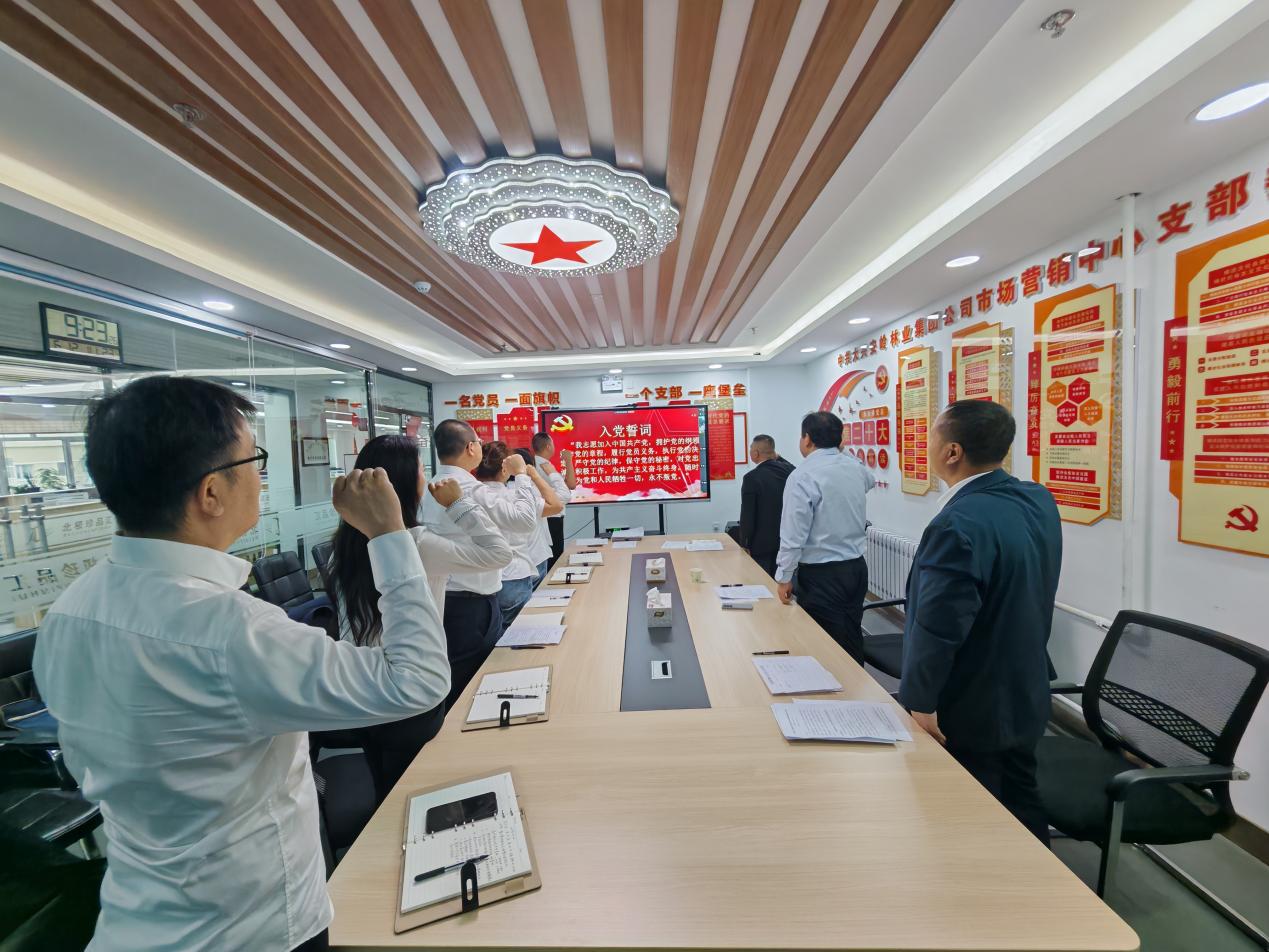 黨徽是黨員身份的象征,佩戴黨徽即肩負(fù)使命。班子成員與老黨員代表為新黨員佩戴黨徽,佩戴時(shí)講解道:“黨徽的鐮刀和錘頭代表工人和農(nóng)民的聯(lián)合,佩戴黨徽意味著要始終牢記為人民服務(wù)的宗旨。” 新黨員以黨徽為戒,老黨員以黨徽為榮,大家決心在市場(chǎng)營(yíng)銷工作中亮出黨員身份,發(fā)揮先鋒模范作用。