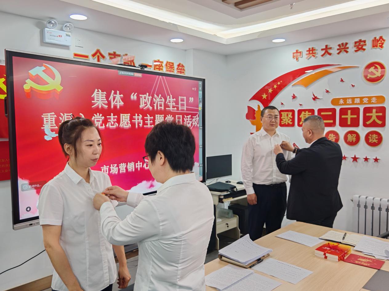 黑龍江經(jīng)濟(jì)網(wǎng)訊(李磊 記者馬朝林)為強(qiáng)化黨員身份意識(shí)與責(zé)任擔(dān)當(dāng),6 月 12 日,大興安嶺林業(yè)集團(tuán)公司市場(chǎng)營(yíng)銷中心黨支部于黨員活動(dòng)室開展 “集體政治生日” 重溫入黨志愿書主題黨日活動(dòng)。