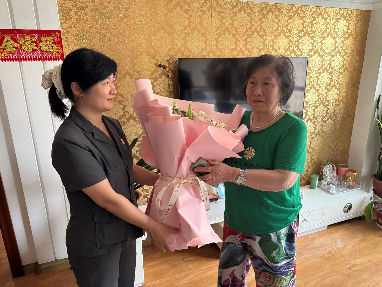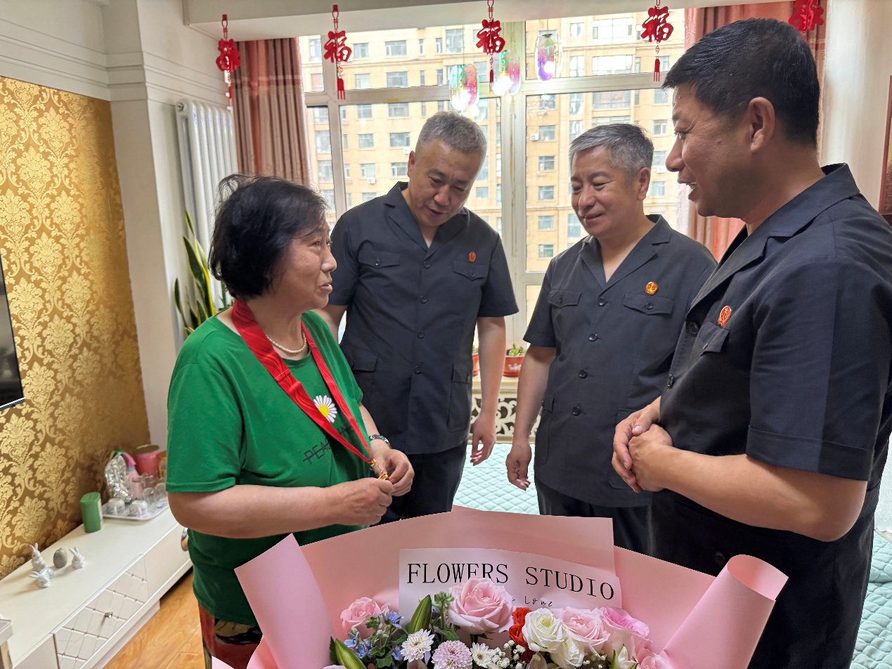 黑龍江經濟網訊(董慧瑩 李雪松 記者馬朝林)在慶祝中國共產黨成立104周年之際,為弘揚黨的光榮傳統(tǒng)和優(yōu)良作風,傳遞黨組織的深切關懷與溫暖,日前,肇東市人民法院開展“七一”走訪慰問活動,為“光榮在黨50年”的退休老黨員姜桂琴頒發(fā)紀念章。
