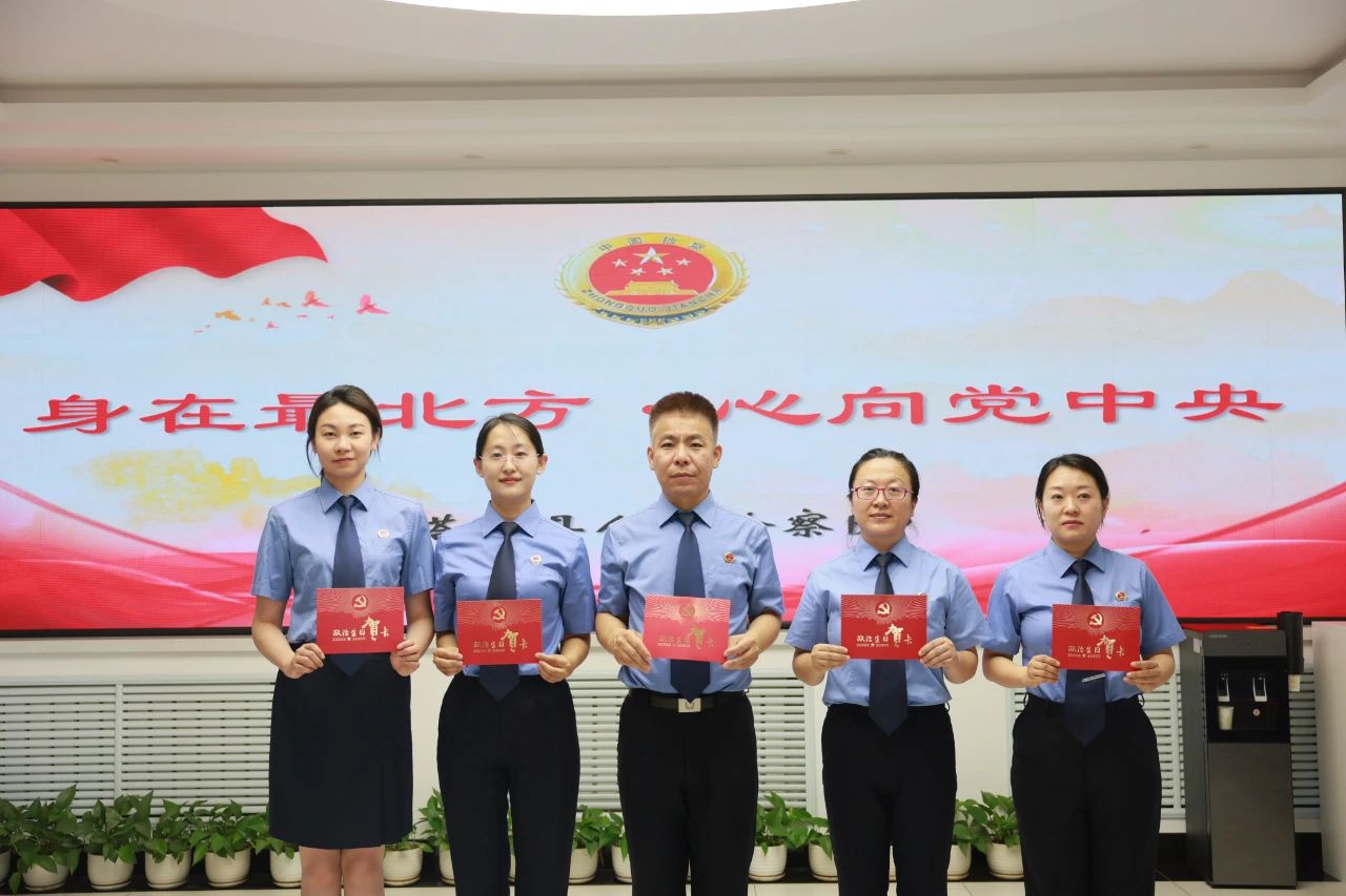 政治生日賦能,激發(fā)檢察奮進(jìn)力量。“祝您政治生日快樂!” 一張承載著組織關(guān)懷的賀卡發(fā)放到每名黨員干警的手中,在政治生日儀式上,全體黨員干警重溫入黨志愿書,回望“第一身份”是共產(chǎn)黨員、“第一職責(zé)”是為黨工作的初心。這一充滿“儀式感”的活動(dòng),不僅激發(fā)了全體黨員干警 “求極致”的辦案動(dòng)力,更要以 “高質(zhì)效辦好每一個(gè)案件”為目標(biāo),用“檢察匠心”書寫新時(shí)代法律監(jiān)督的嶄新答卷。