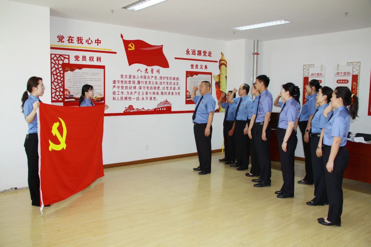 重溫入黨誓詞,堅定理想信念。全體黨員干警整齊列隊,面向鮮紅的黨旗,莊嚴(yán)地舉起右手,重溫入黨誓詞。“我志愿加入中國共產(chǎn)黨,擁護(hù)黨的綱領(lǐng),遵守黨的章程……”誓言鏗鏘有力,每一位黨員干警都以飽滿的熱情、昂揚(yáng)的斗志,表達(dá)著對黨的無限忠誠和為黨的事業(yè)奮斗終身的堅定決心。