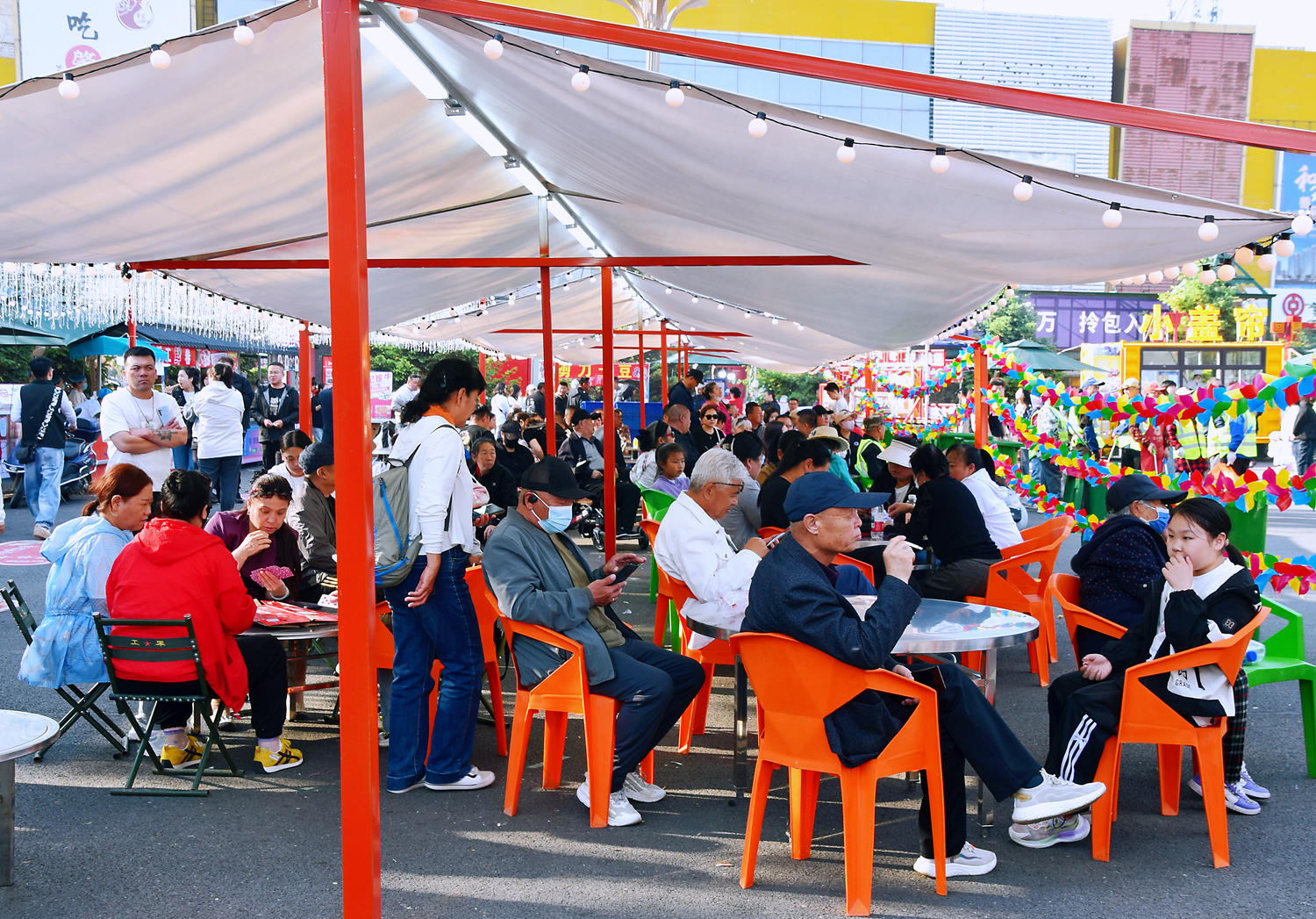 活動現(xiàn)場,肇東小餅作為“當(dāng)家招牌”,搭配創(chuàng)新口味和工藝,吸引游客駐足?!皼]想到這里的夜市這么大,太有氛圍了,過癮!”一位來自哈爾濱的游客說。演藝互動現(xiàn)場,架子鼓表演、動感單車表演火力全開,震撼人心的演出和動感十足的節(jié)拍,點燃了現(xiàn)場氣氛。在動靜相宜的娛樂休閑區(qū),“筆落驚鴻·墨染乾坤”肇東傳統(tǒng)書畫品鑒會、“小餅香里品書香”觀書展,讓文化在煙火氣中生生不息,當(dāng)美食與文學(xué)邂逅,字里行間品風(fēng)味,唇齒間留遐想,世間滋味便不可辜負。
