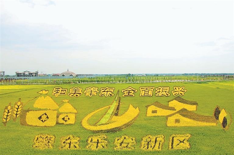 樂安新區(qū)的稻田畫從5月份開始插秧制作,進(jìn)入7月份呈現(xiàn)出最佳觀賞效果,觀賞期將持續(xù)至10月份?!八境墒熘两瘘S色,稻田畫更漂亮,有另一種詩情畫意的自然美?!备浇l(xiāng)鎮(zhèn)五湖村曲家屯農(nóng)戶李建國說。