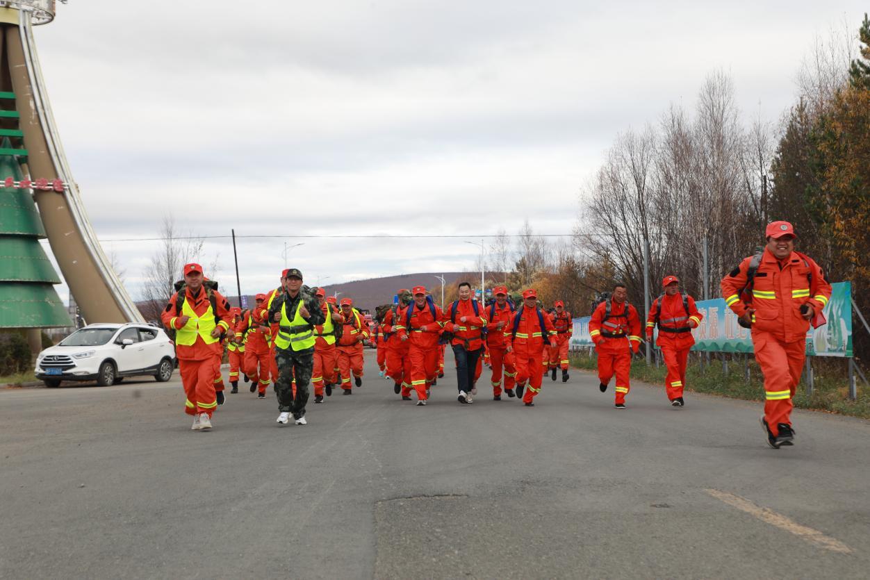阿木爾林業(yè)局撲火專業(yè)隊員在進(jìn)行負(fù)重跑比賽(王力 攝)