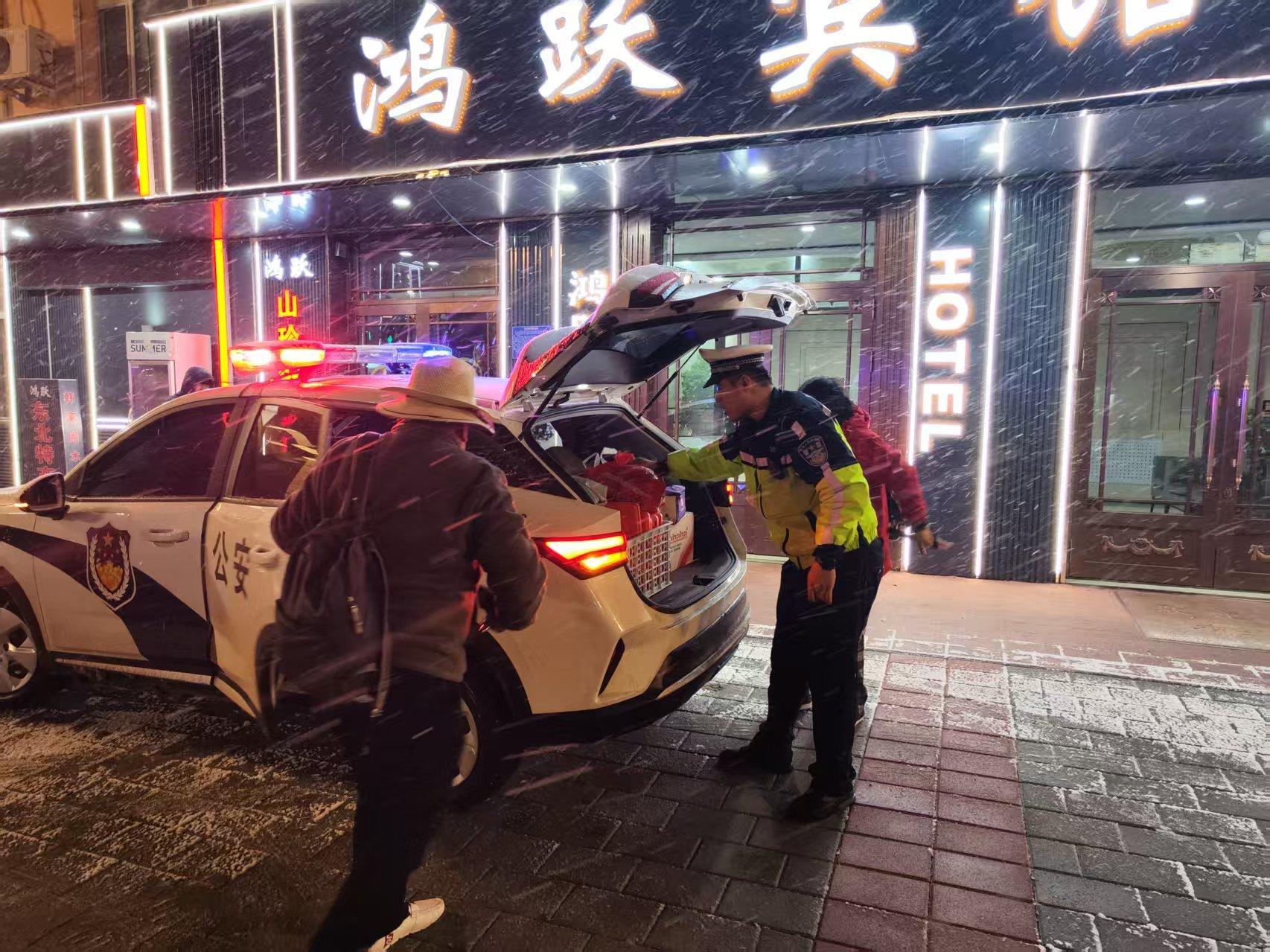 了解到這一情況后,民警立即安撫游客的情緒。由于路況不佳,為確保安全,民警幫助二人聯(lián)系呼瑪縣住宿并送到住處。同時,民警叮囑司機(jī),遇到降雪天氣,務(wù)必控制車速、減速慢行,以免發(fā)生意外。