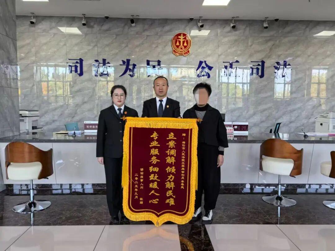 一面錦旗,不僅是當事人對法官工作的認可,更是對法院踐行“司法為民”理念的肯定。近年來,海倫市人民法院始終堅持“調(diào)解優(yōu)先、調(diào)判結(jié)合”原則,針對家事糾紛的特殊性,不斷優(yōu)化調(diào)解方式,通過“法理+情理”雙管齊下,努力實現(xiàn)“案結(jié)事了人和”的司法效果,用溫情司法守護家庭和睦,讓司法溫度照亮每一個家庭。