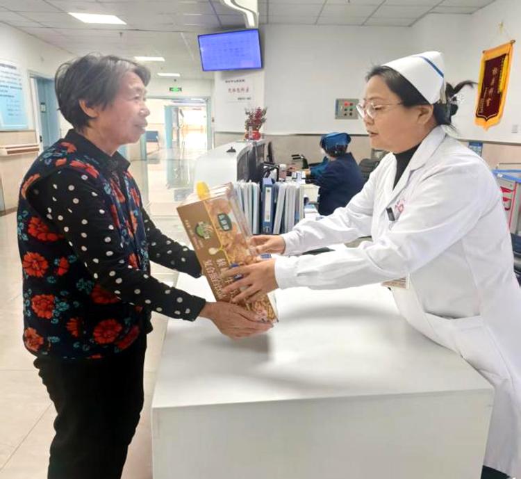 禮品雖小,情意濃重。開展活動(dòng)期間,醫(yī)護(hù)人員們帶著精心準(zhǔn)備的小禮品,走進(jìn)每一位60歲以上老年患者的病房。這些小禮品雖然價(jià)格并不昂貴,但卻飽含著對(duì)患者的深深祝福。柔軟舒適的保暖襪,為患者在漸冷的霜降時(shí)節(jié)增添一份溫暖;營養(yǎng)豐富的滋補(bǔ)品,助力患者增強(qiáng)身體抵抗力;寓意吉祥的平安符,寄托著對(duì)患者早日康復(fù)的美好期許。當(dāng)醫(yī)護(hù)人員將一份份小禮品送到患者手中時(shí),患者們的臉上都洋溢著驚喜與感動(dòng)的笑容,紛紛對(duì)科室的貼心關(guān)懷表示感謝?;颊邉⒁碳?dòng)地說:“在這個(gè)特殊的節(jié)日里,收到你們送的禮物,心里特別溫暖”。