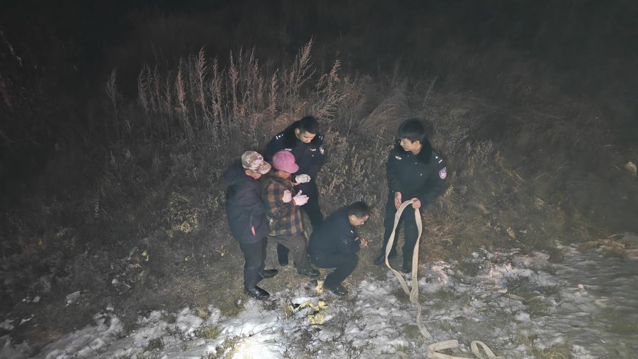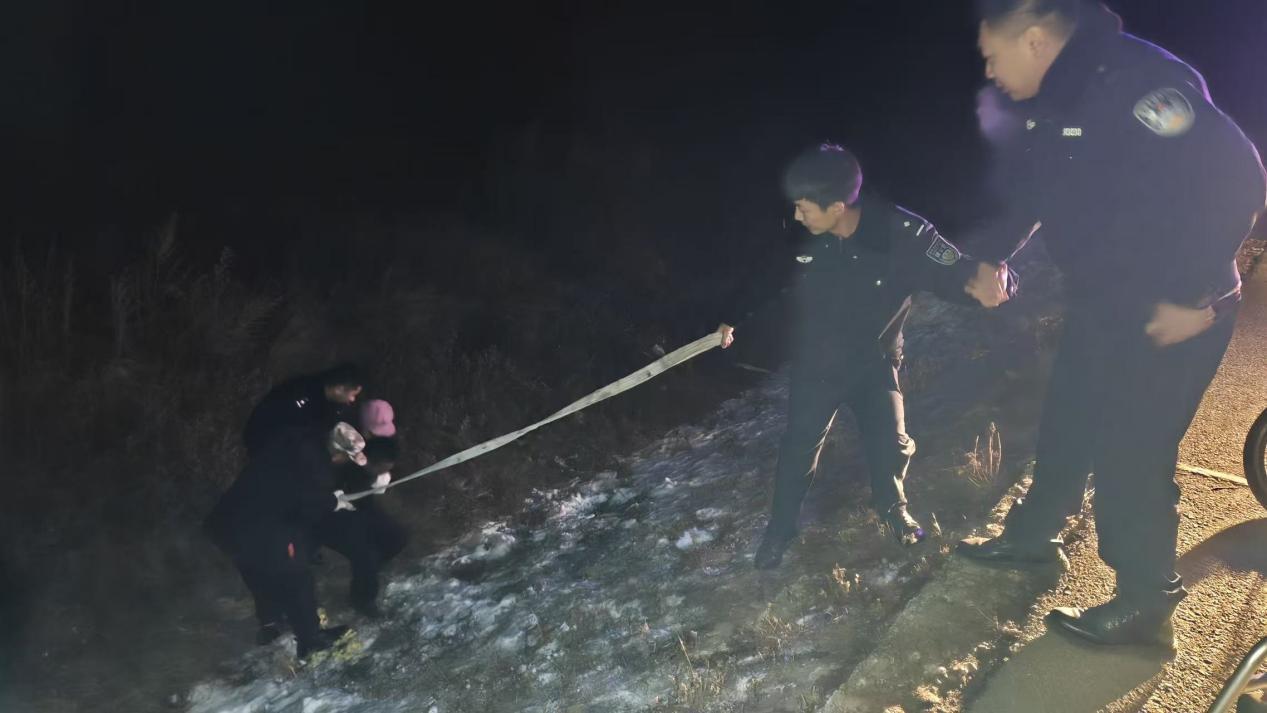 據(jù)了解,當(dāng)時呼瑪縣公安局興華派出所民輔警正對轄區(qū)開展常態(tài)化巡查,發(fā)現(xiàn)一位群眾在路邊攔住警車,民輔警立即停車查看情況。詢問得知,該群眾的妻子乘坐電動輪椅時由于天黑路滑不慎駛進了深溝,因其妻子年過六旬身體殘疾且行動不便,墜入深溝摔倒后無法起身,恰好此時看到巡邏的警車,便立刻攔車尋求幫助。